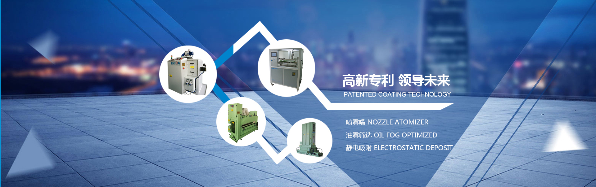 TRIOA? 臥式靜電涂油機利用獨特的噴嘴使油一次霧化荷電,二次油霧篩選氣流控制及三次油霧靜電吸附的涂油...
